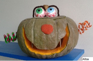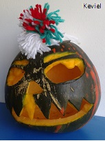 viu unha cabaza cunha cara pintada. Foi mirando habitación por habitación