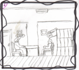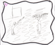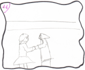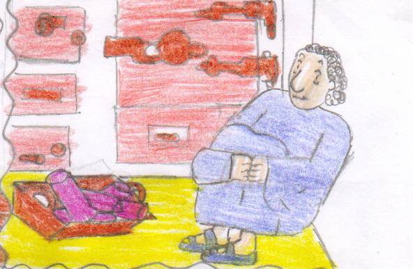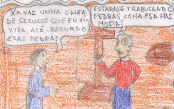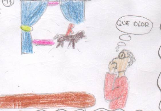 ![]() Máteo non sabía o que se empregaba para facer as casa modernas. Preguntaba asombrado. Cando viu a televisión quedou moi asustado, agachándose onde puido |