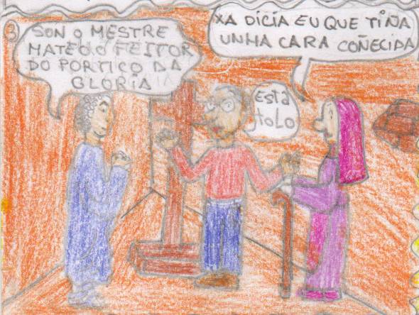 ![]() Avelina apareceu no taller cunha postal na man comprobando que era o mestre Máteo da catedral |