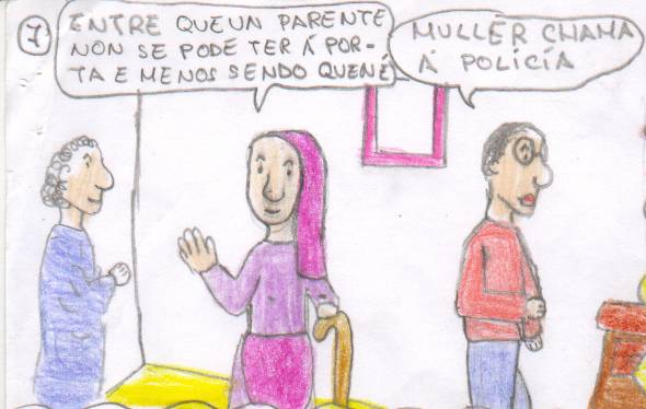 ![]() Todos estaban pampos e para gañar tempo e chamr á policía mandárono pasar. A nai de Alfonso era a única que non pensaba que estaba tolo. Ela cría nel. |
