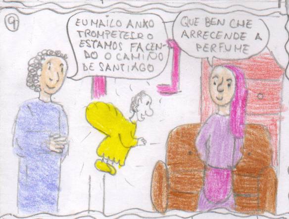 ![]() Apagaron a tele e Máteo saíu un pouco asustado. Contoulles que espertara para facer o camiño. O anxo trompeteiro entrou na casa deixando un aroma agradable imitante a perfume |