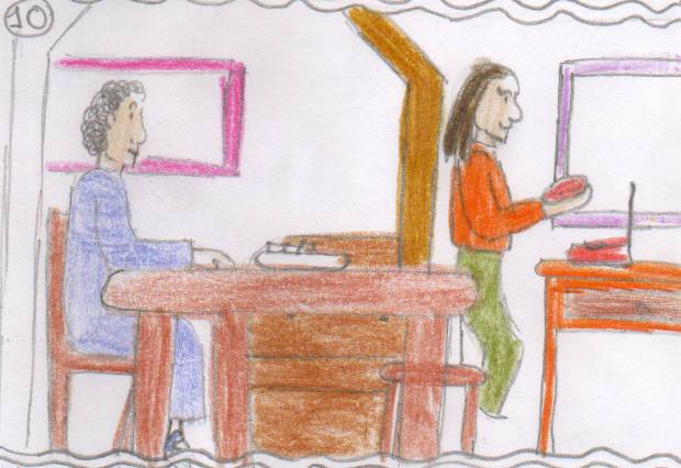 ![]() Mentre Alfonso chamaba á policía, a súa muller e a nai puxeron comida na mesa. Máteo comís sen rechistar |