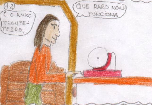 ![]() Alfonso desconfiou de que puidera facer algo, así que o seguiu escoitando a conversa que tivo co anxo trompeteiro |
